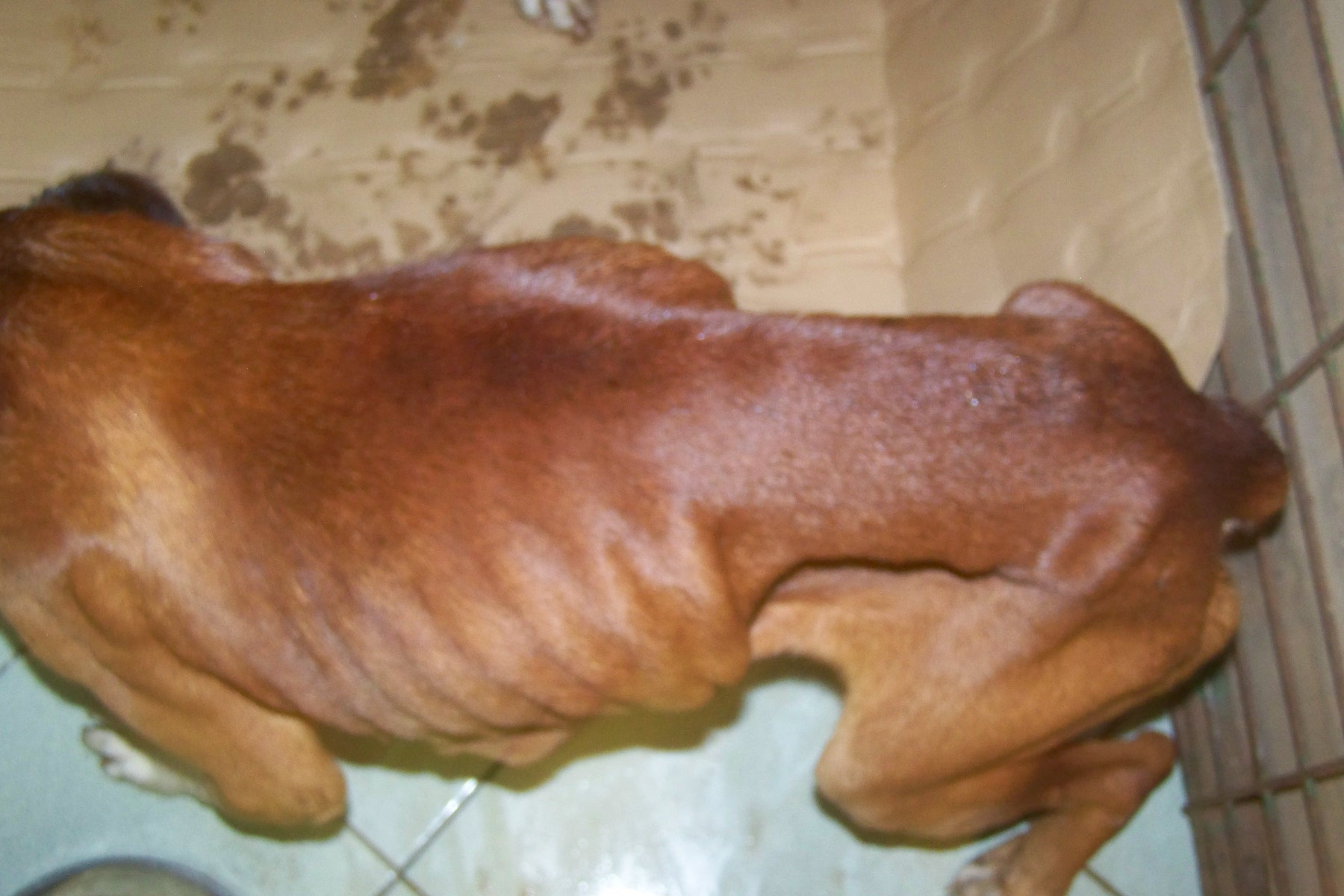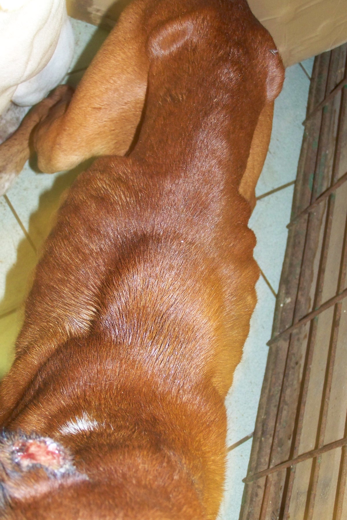 John F. nagyon legyengült, sovány állapotban került hozzánk, mindössze 19 kiló volt. Hemzsegtek benne a bolhák, mindkét fülén légycsípés okozta nagy sebek voltak.